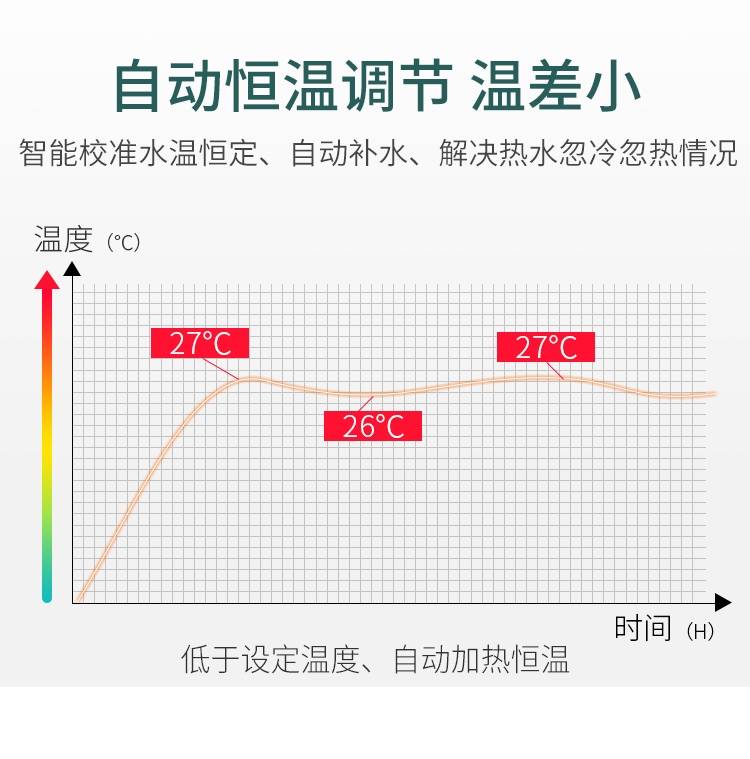 泳池式空气能热泵产品系列适用于泳池、浴室、休闲娱乐等场所,它以少量电能,利用空气中的大量热能对冷水进行加热,能效比高达5.2,比电热方式省电75%,且不受天气因素影响,也没有煤气排放,清洁环保。在运行过程中,热泵机组内置的电子芯片可以实现智能化监控,无需专人维护即可确保水温恒定。